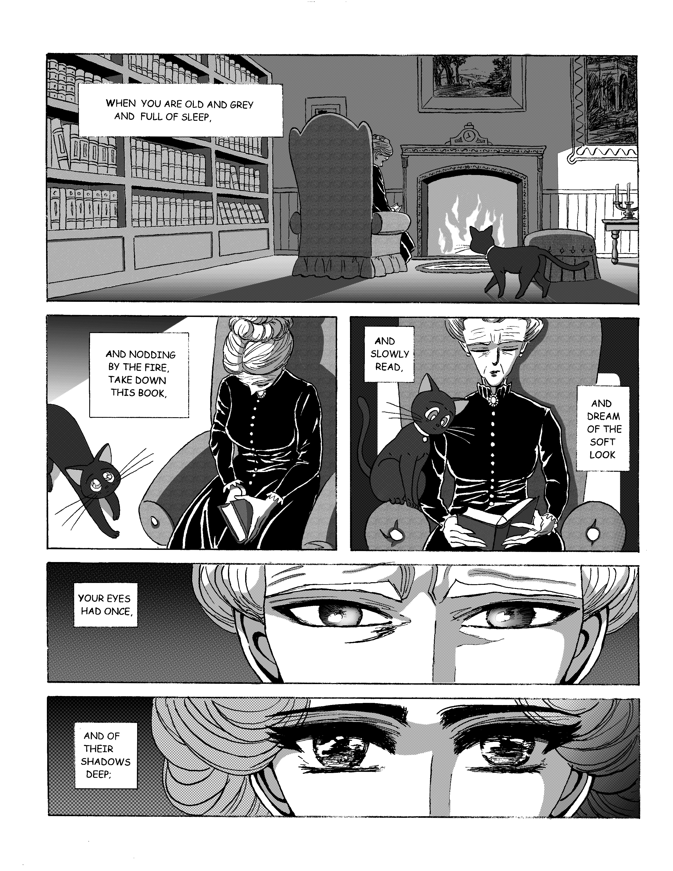 Thanks a lot! Japanese manga eyes are indeed incredibly soulful. In fact it was probably Yeats’ line about the woman’s eyes with “their shadows deep” that gave me the idea of adapting this poem in this particular style.